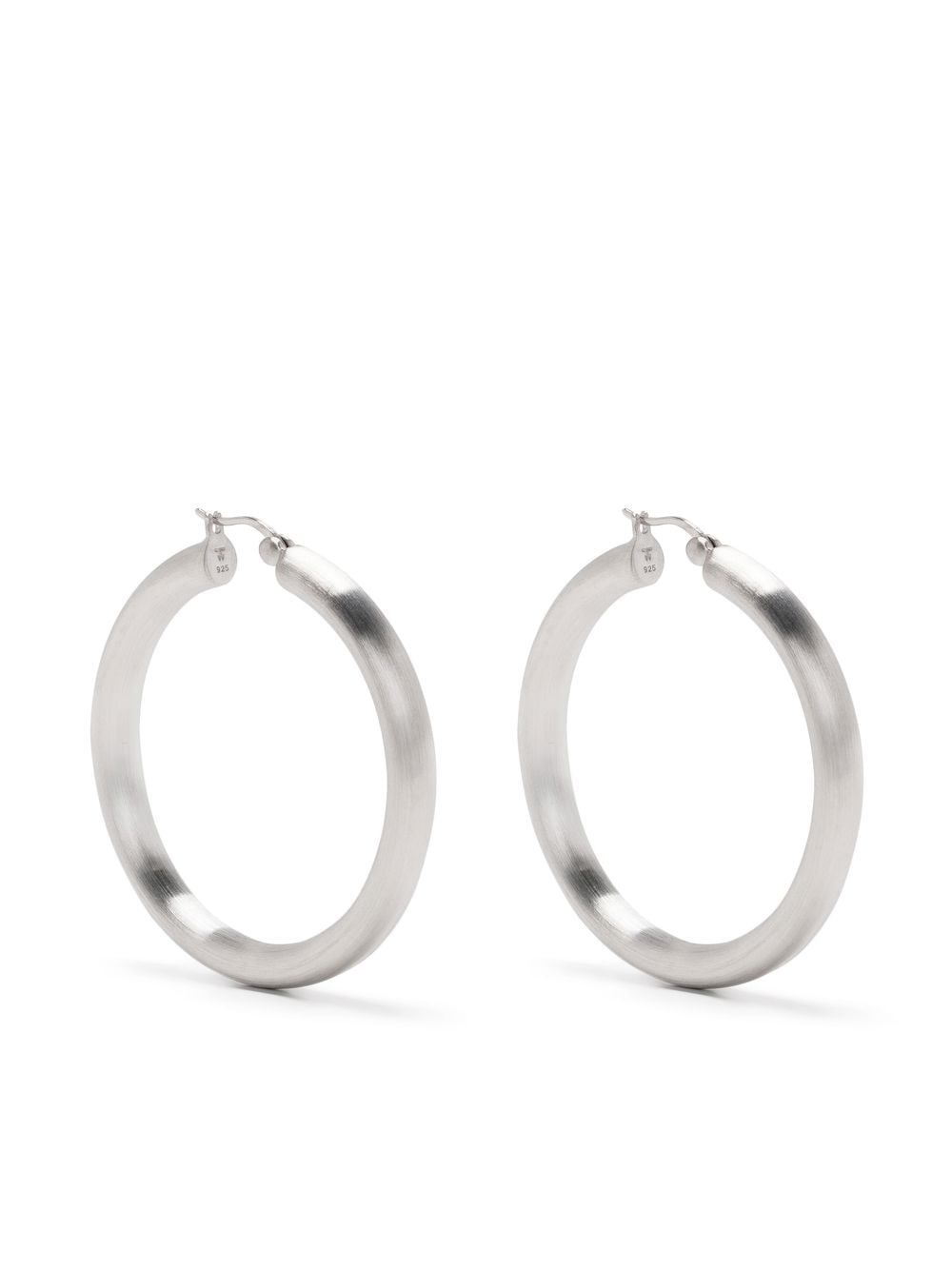 Classic Thick Satin XL hoop earrings Highlights - Rhodium plating - Recycled silver - Large hoop design - Lever fastening - These earrings come as a pair. Imported SIZE & FIT Model measurements Height 5 ft 10 in(1.79 m) Bust/Chest 32.67 in(83 cm) Hips 34.25 in(87 cm) Waist 24.4 in(62 cm) Measurement HEIGHT 1.65 in(4.2 cm) Weight (single earring) 4 g(4 g) WIDTH 0.15 in(0.4 cm)