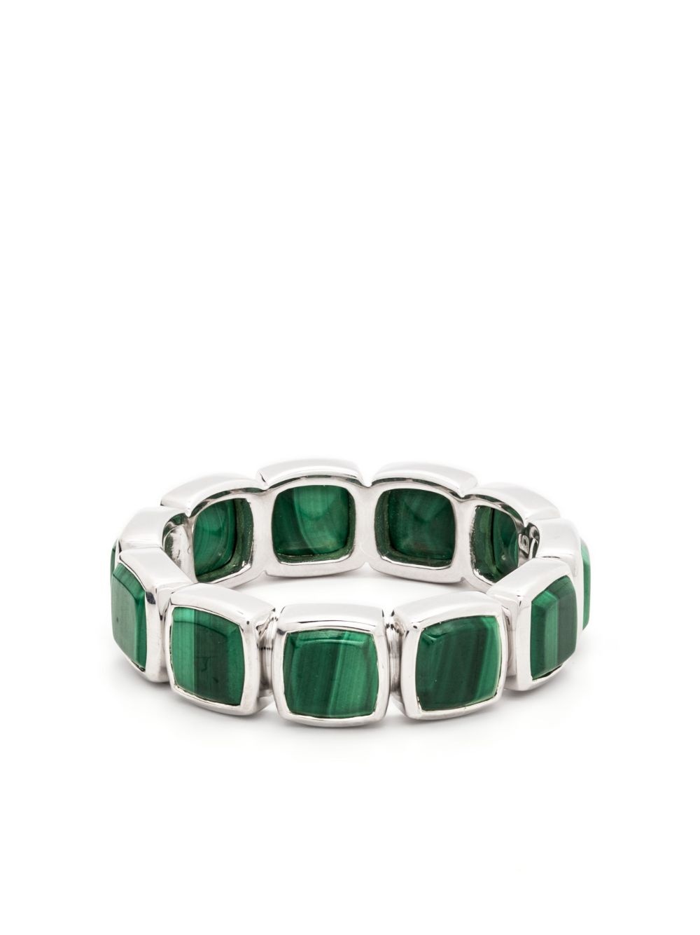 Cushion Band malachite ring Highlights - Silver-tone - Malachite - Recycled silver - Polished finish - Cushion band Imported SIZE & FIT Model measurements Height 6 ft 2 in(1.88 m) Bust/Chest 35.03 in(89 cm) Hips 35.82 in(91 cm) Waist 27.95 in(71 cm) Measurement Band Width 0.19 in(0.5 cm) CIRCUMFERENCE 2.36 in(6 cm)