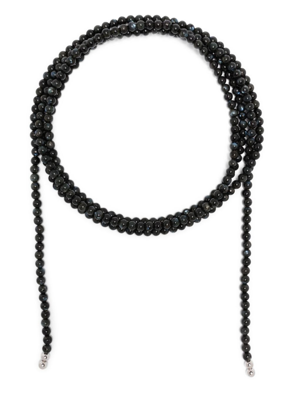 larvikite bead necklace Highlights - Black - Sterling silver beads - Larvikite beads - Multiple strands - Adjustable length - Lobster claw fastening Imported SIZE & FIT Measurement Length when open 69.29 in(176 cm) WIDTH 0.23 in(0.6 cm)