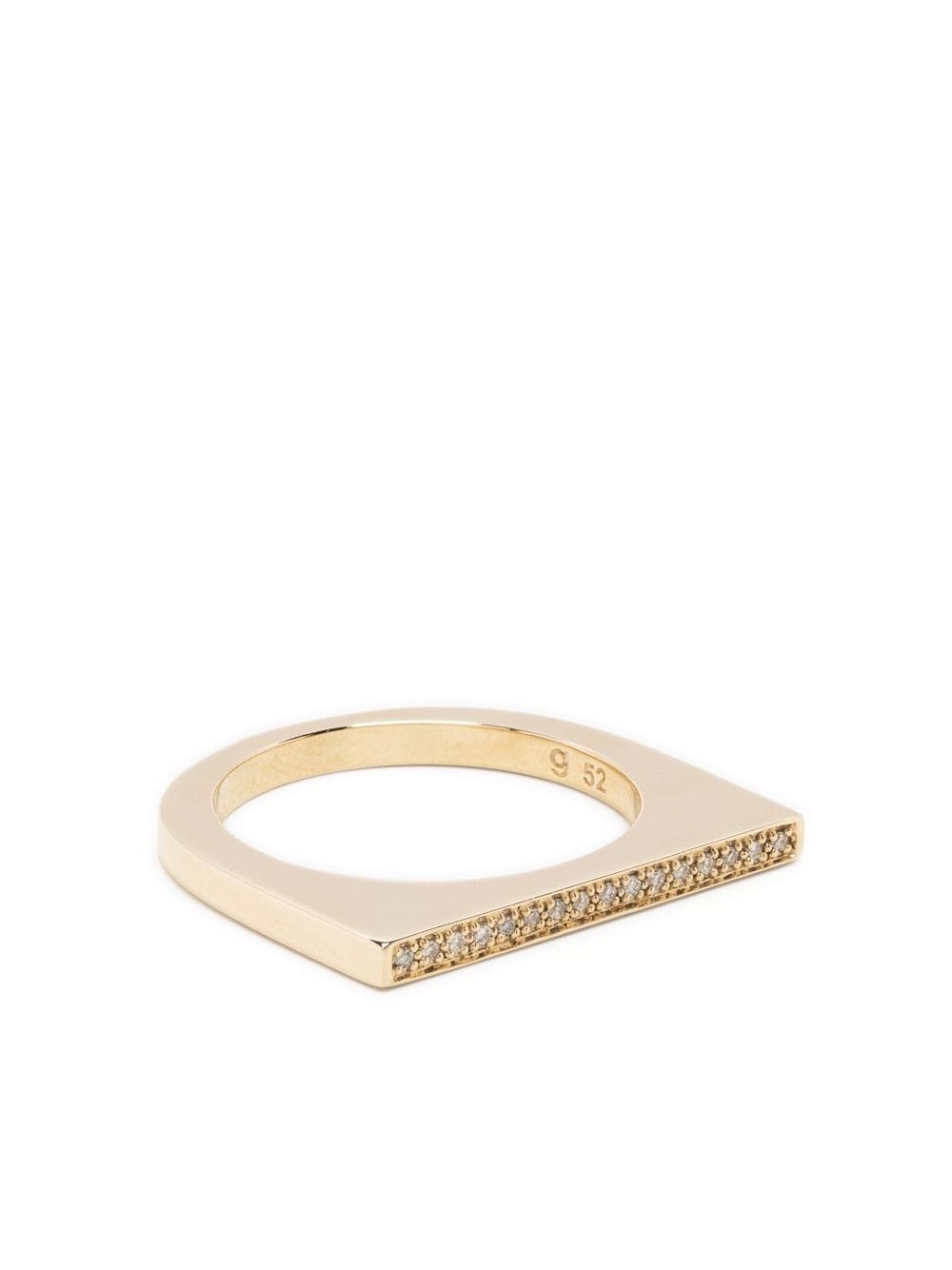 Sleek 9kt gold diamond ring Highlights - Gold-tone - 9kt recycled gold/diamond - Rectangle shape - Slip-on style - Stackable design Imported SIZE & FIT Model measurements Height 5 ft 11 in(1.8 m) Bust/Chest 28.34 in(72 cm) Hips 35.43 in(90 cm) Waist 23.62 in(60 cm) Measurement Band Width 0.07 in(0.2 cm) CIRCUMFERENCE 2.04 in(5.1 cm) Feature Length 0.78 in(2 cm) Feature Width 0.07 in(0.2 cm)