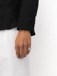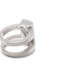 Vault Shield ring silver-tone rhodium plated sterling silver brushed finish double stranded design Imported SIZE & FIT Model measurements Height 6 ft 2 in(1.87 m) Bust/Chest 38.18 in(97 cm) Hips 36.61 in(93 cm) Waist 29.13 in(74 cm)