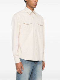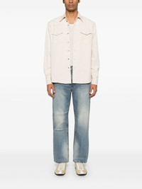 denim shirt Highlights - Light beige - Front press-stud fastening - Two chest flap pockets - Press-stud fastening cuffs - Curved hem Imported Composition Cotton 100% SIZE & FIT Model measurements Height 6 ft 2 in(1.89 m) Bust/Chest 35.03 in(89 cm) Hips 38.18 in(97 cm) Waist 29.92 in(76 cm) FittingInformation Designed for a relaxed fit, this piece allows for comfort and movement when worn Sturdy and hard-wearing, this denim piece offers no stretch