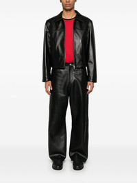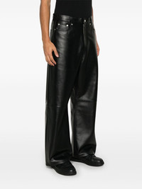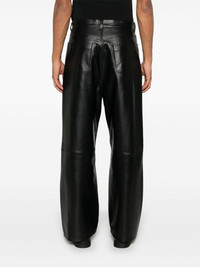 wide-leg trousers Highlights - Black - Front button and zip fastening - Belt loops - Classic five pockets - Seam detailing Imported Composition Lining: Polyester 52%, Viscose 48% Outer: Lambskin 100% SIZE & FIT Model measurements Height 6 ft 2 in(1.89 m) Bust/Chest 35.03 in(89 cm) Hips 38.18 in(97 cm) Waist 29.92 in(76 cm) FittingInformation Designed with a wide leg, offering a loose and roomy fit Soft leather has a supple and smooth construction offering some flexibility