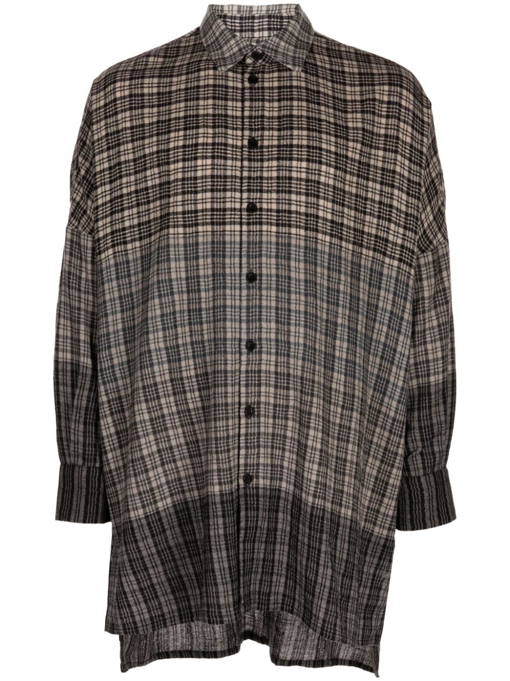 check-print wool shirt Highlights - Brown - Wool - Wool - Check print - Long sleeves - Spread collar - Buttoned cuffs - Front button fastening - Straight hem Imported Composition Wool 100% Washing instructions Dry Clean Only
