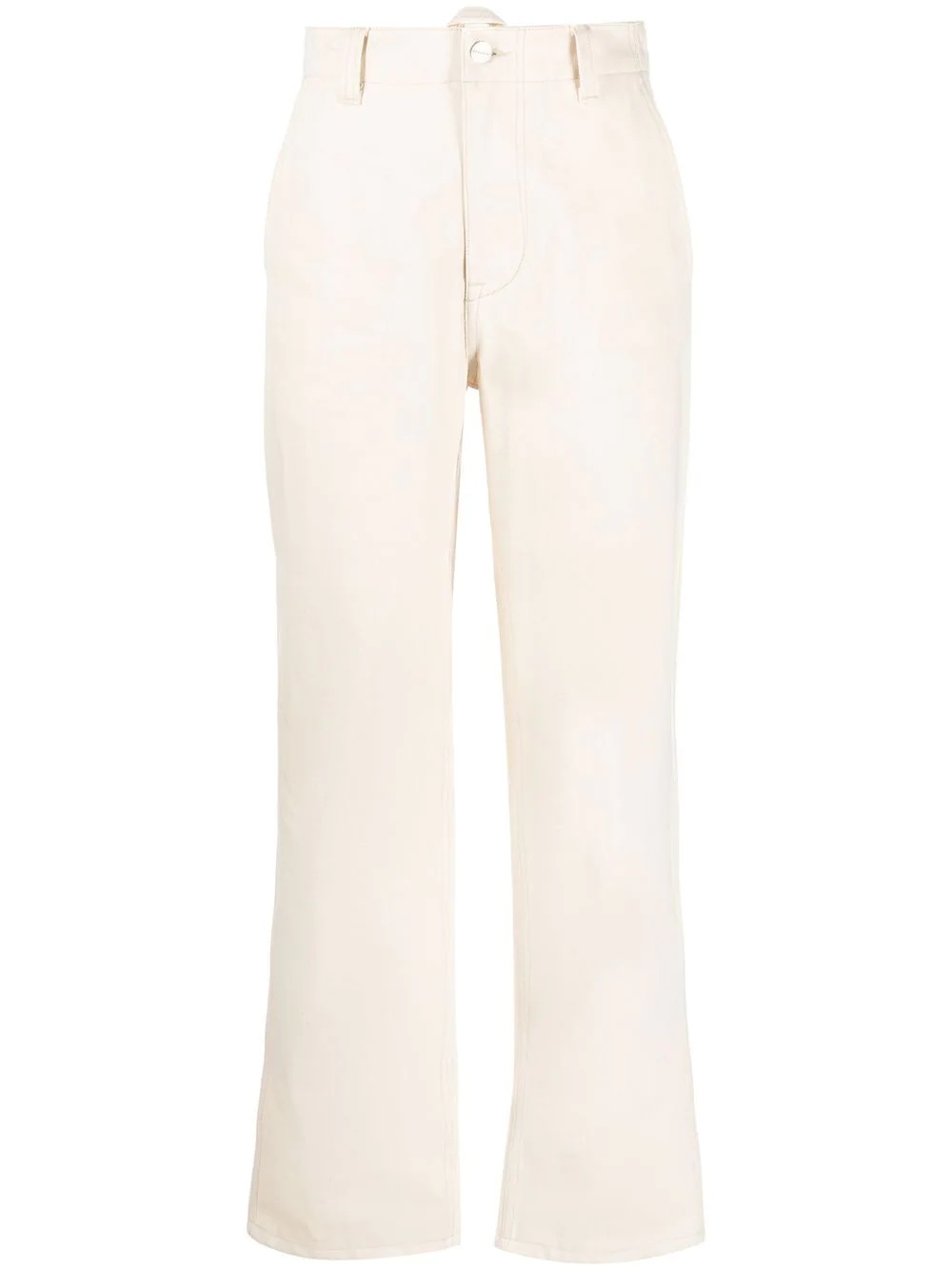 high-waist organic cotton jeans Highlights - Beige - Organic cotton - High waist - Belt loops - Front button and zip fastening - Straight leg - Two side slit pockets - Rear patch pocket Imported Composition Organic Cotton 100% SIZE & FIT Model measurements Height 5 ft 9 in(1.76 m) Bust/Chest 33.07 in(84 cm) Hips 34.64 in(88 cm) Waist 25.59 in(65 cm) FittingInformation This piece fits true to size. We recommend you get your regular size Designed to be fitted at the waist and hips, loose over the leg Made with a mid-weight non-stretch fabric Washing instructions Machine Wash