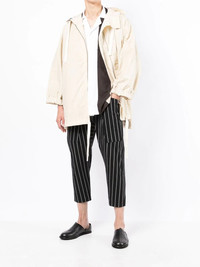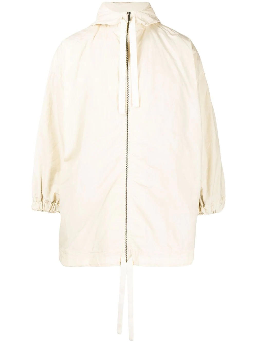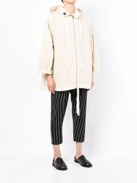 hooded drawstring cotton coat chalk white cotton drawstring hood drawstring hem front zip fastening three-quarter length sleeves straight hem thigh-length Imported Composition Cotton 100% SIZE & FIT Model measurements Height 6 ft 2 in(1.87 m) Bust/Chest 34.25 in(87 cm) Hips 36.22 in(92 cm) Waist 29.52 in(75 cm) FittingInformation This piece fits true to size. We recommend you get your regular size Cut for a loose fit Made with a mid-weight non-stretch fabric Washing instructions Hand Wash