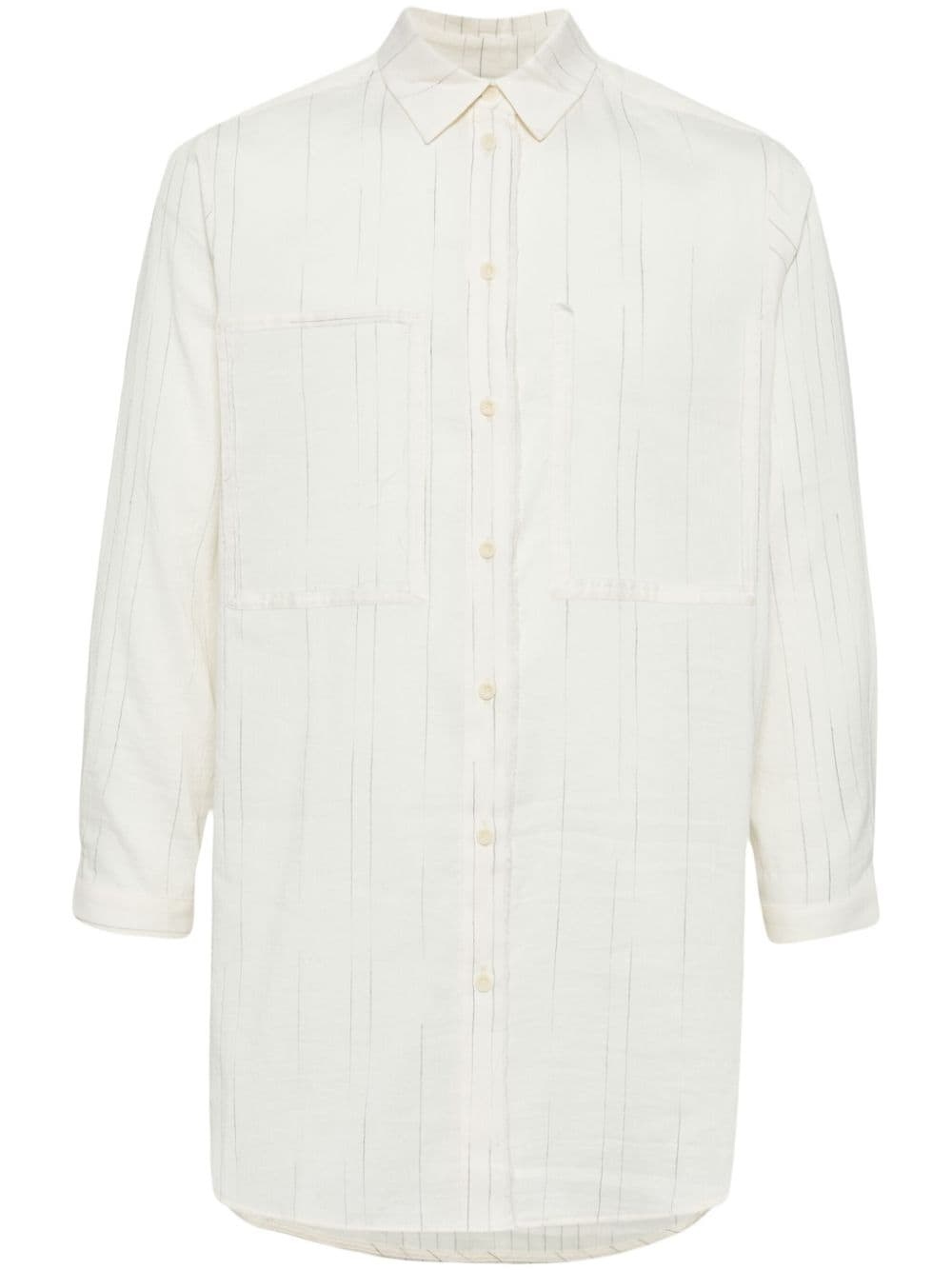 stripe-print cotton-linen shirt Highlights - Cream white - Cotton/linen - Stripe detailing - Classic collar - Front button fastening - Long sleeves - Jetted chest pocket - Two front jetted pockets - Curved hem Imported Composition Cotton 73%, Linen/Flax 27%