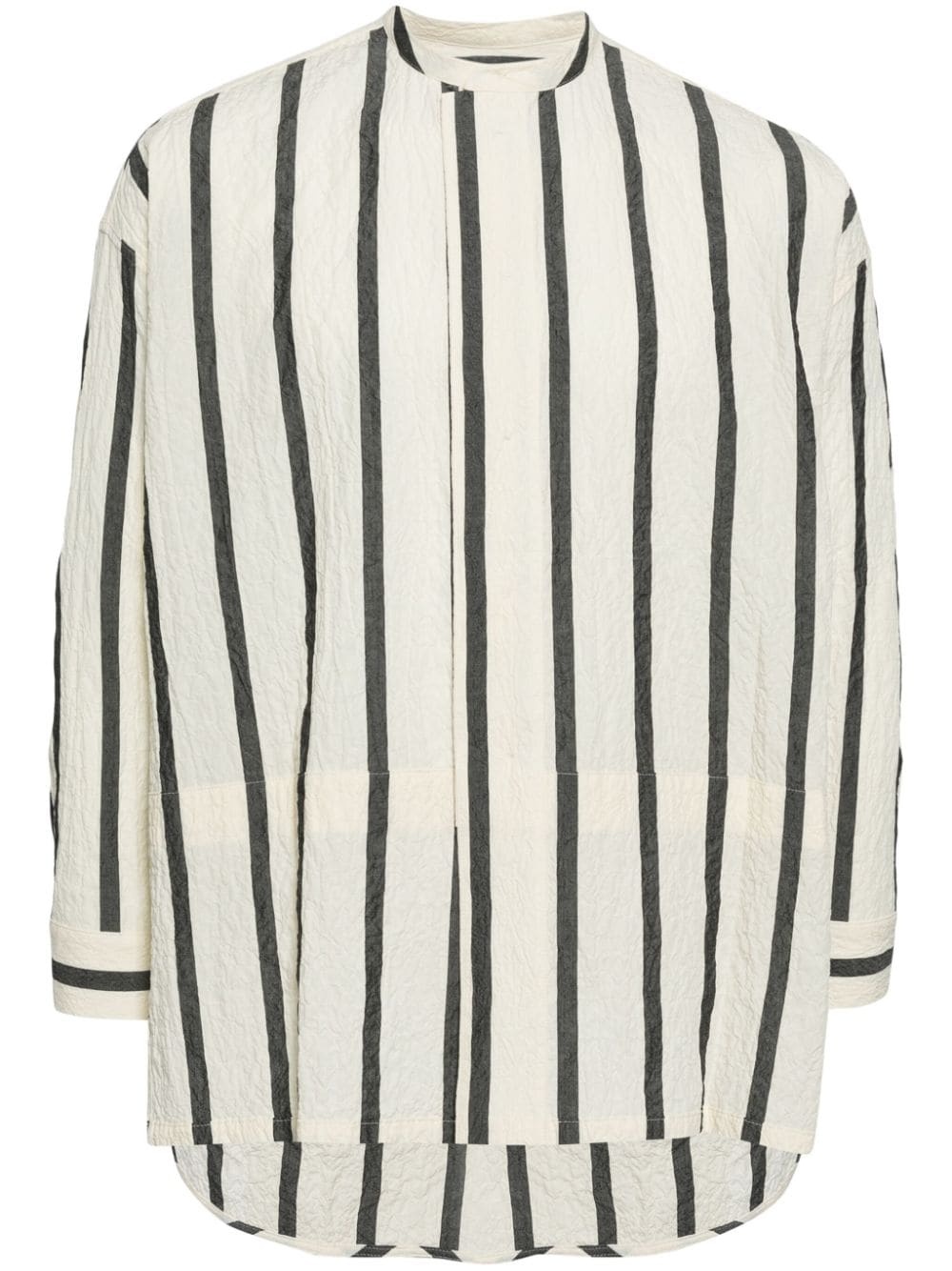 striped cotton shirt Highlights - Cream white/grey - Stretch-cotton - Vertical stripe pattern - Band collar - Concealed front fastening - Long sleeves - Straight hem Imported Composition Cotton 99%, Elastane 1%