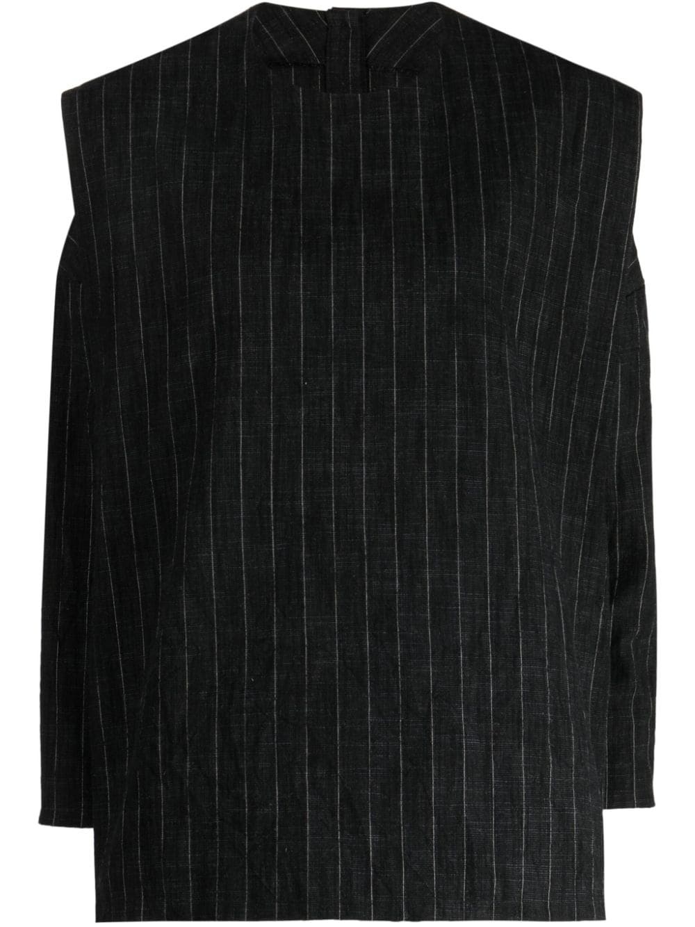 The Parchmenter striped top Highlights - Black - Cotton blend - Vertical stripe pattern - Round neck - Rear button fastening - Long sleeves - Straight hem Imported Composition Cotton 82%, Wool 14%, Polyamide 4% Washing instructions Dry Clean Only