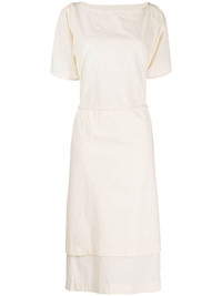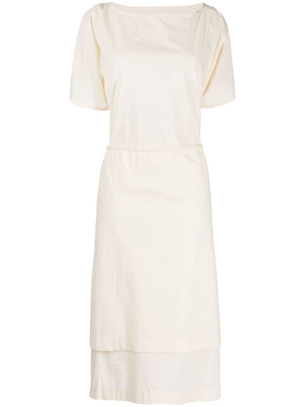 The Shimmer midi dress Highlights - Ivory white - Cotton - Pleat detailing - Layered details - Square neck - Short sleeves - Elasticated waistband - Mid-length - Handkerchief hem Imported Composition Body: Cotton 100% SIZE & FIT Model measurements Height 5 ft 10 in(1.78 m) Bust/Chest 30.31 in(77 cm) Hips 34.64 in(88 cm) Waist 24.01 in(61 cm) FittingInformation Designed to be unstructured, offering a loose fit throughout The adjustable drawstring means that you can adjust this piece’s fit to suit your comfort and preference Made from a midweight non-stretch fabric This piece fits true to size – take your usual size Washing instructions Hand Wash