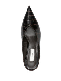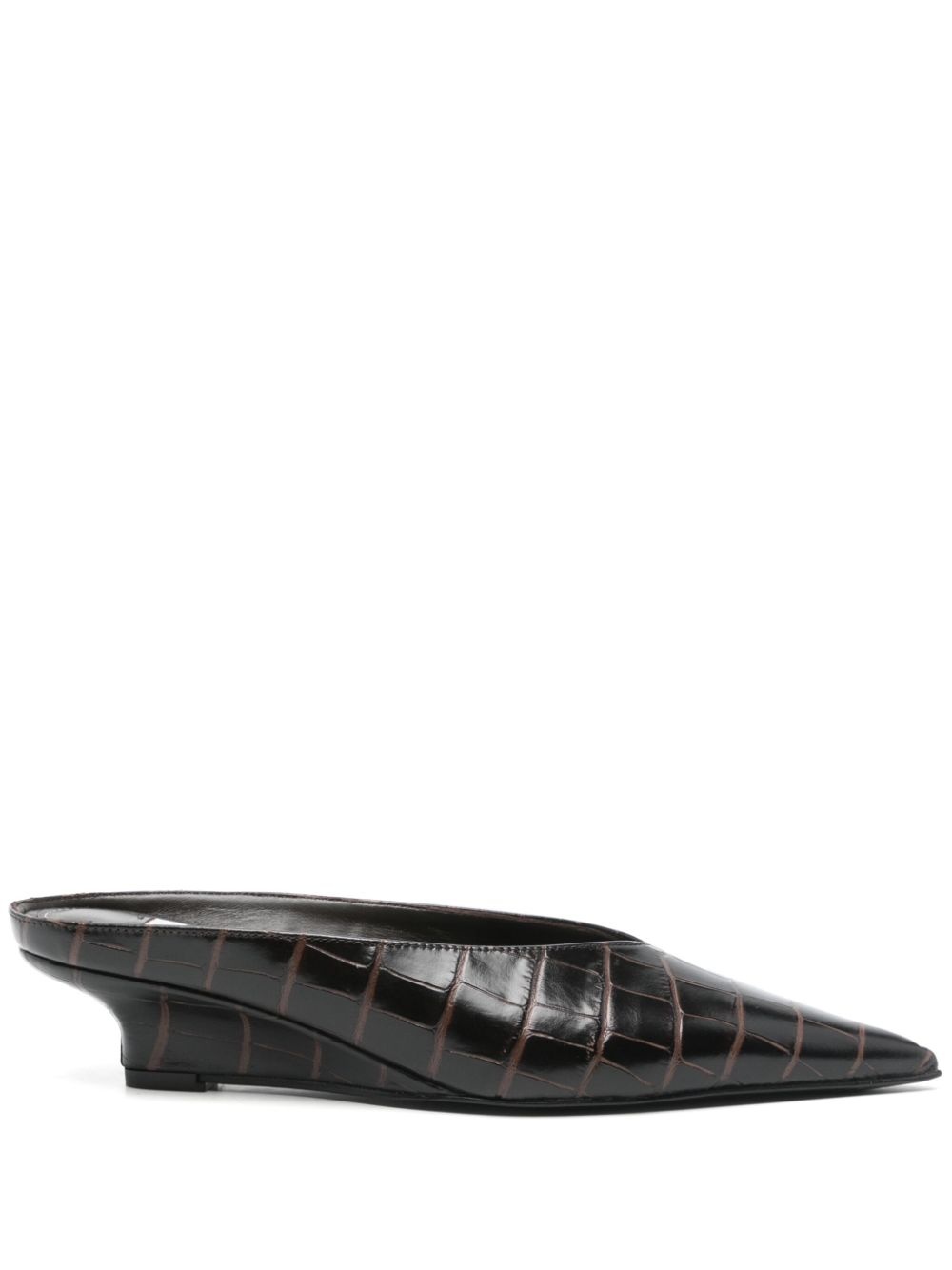 Sharp croco-embossed wedge mules dark brown