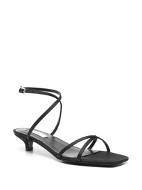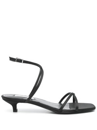 50mm satin crossover sandals Highlights - Black - Buckle-fastening ankle strap - Square open toe - Kitten heel - Branded insole Made in Italy Composition Lining: Calf Leather 100%, Recycled Polyamide 100% Outer: Recycled Polyamide 100% Sole: Calf Leather 100% SIZE & FIT Measurement HEEL 1.96 in(5 cm)