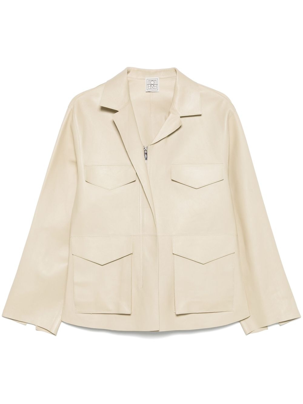 Army jacket Highlights - Beige - Concealed front zip fastening - Four front flap pockets - Notched lapels - Long sleeves Imported Composition Lamb Skin 100% SIZE & FIT Model measurements Height 5 ft 10 in(1.78 m) Bust/Chest 33.85 in(86 cm) Hips 36.61 in(93 cm) Waist 26.77 in(68 cm) FittingInformation Designed to be unstructured, offering a loose fit throughout Soft leather has a supple and smooth construction offering some flexibility