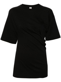 asymmetric organic cotton T-shirt Highlights - Black - Organic cotton - Lightweight jersey - Ribbed trim - Crew neck - Short sleeves - Asymmetric hem Imported Composition Organic Cotton 100% SIZE & FIT FittingInformation Designed for a slim fit that sits just away from the body offering a close yet comfortable fit Made from a midweight non-stretch fabric, this piece offers minimal elasticity when worn