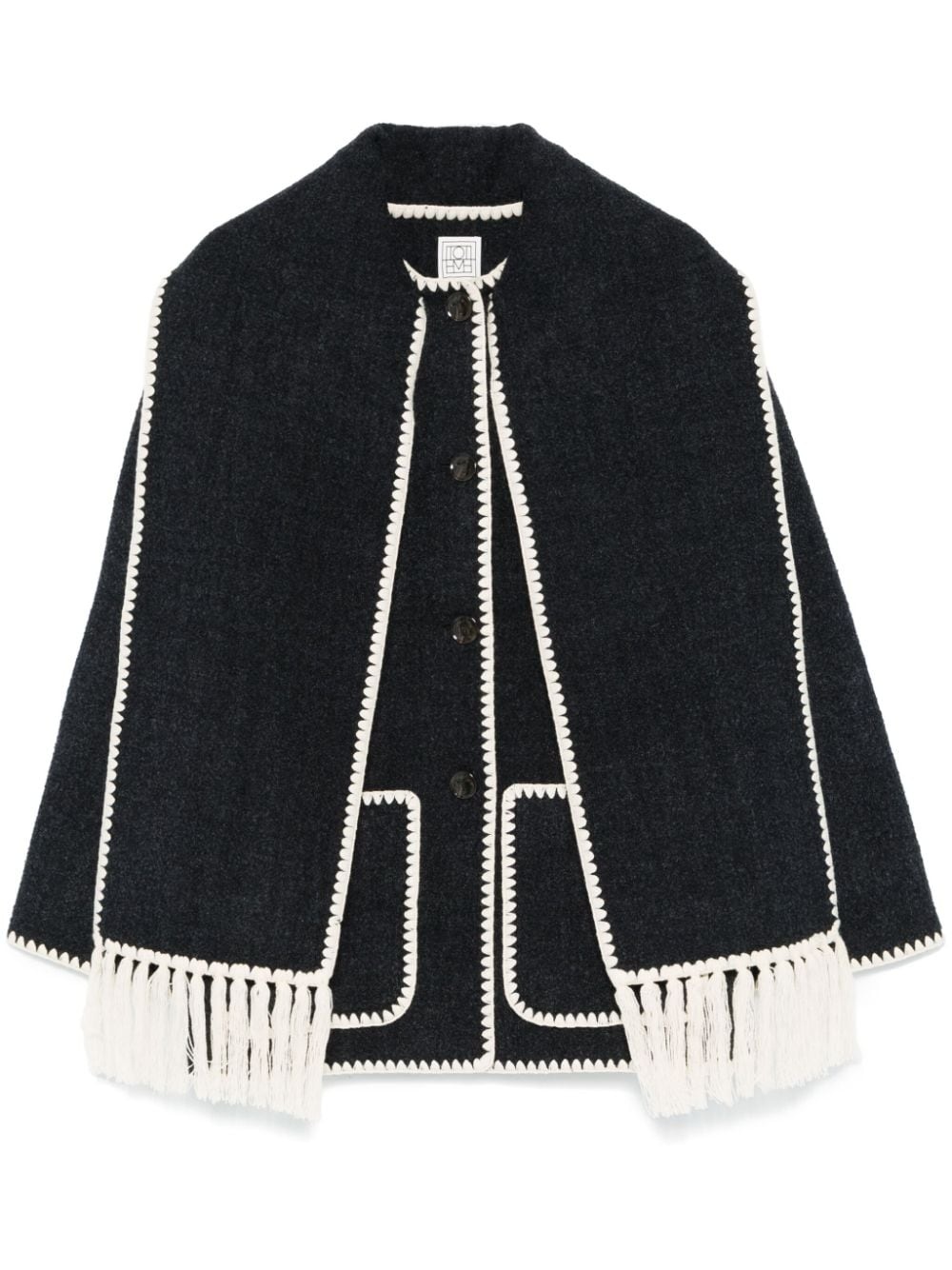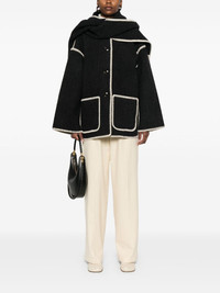 attached-scarf jacket Highlights - Anthracite grey - Wool blend - Felted - Whipstitch trim - Attached scarf - Front button fastening - Round neck - Drop shoulder - Long sleeves - Two side patch pockets - Unlined - Straight hem Imported Composition Wool 68%, Recycled Wool 20%, Recycled Polyamide 12% SIZE & FIT Model measurements Height 5 ft 11 in(1.8 m) Bust/Chest 31.49 in(80 cm) Hips 36.61 in(93 cm) Waist 24.4 in(62 cm) FittingInformation Designed to be unstructured, offering a loose fit throughout Made from a midweight non-stretch fabric
