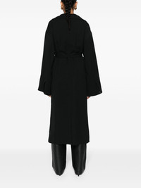 belted twill coat Highlights - Black - Twill weave - Detachable waist belt - Draped lapels - Open front - Long sleeves with split cuffs - Two side slit pockets - Central rear vent - Straight hem - Mid-length Imported Composition Elastane 100%, Viscose 100% SIZE & FIT Model measurements Height 5 ft 10 in(1.78 m) Bust/Chest 33.07 in(84 cm) Hips 36.61 in(93 cm) Waist 24.8 in(63 cm) FittingInformation Designed to be unstructured, offering a loose fit throughout The belt offers adjustability for fitted preferences Made from a midweight non-stretch fabric This piece fits true to size – take your usual size