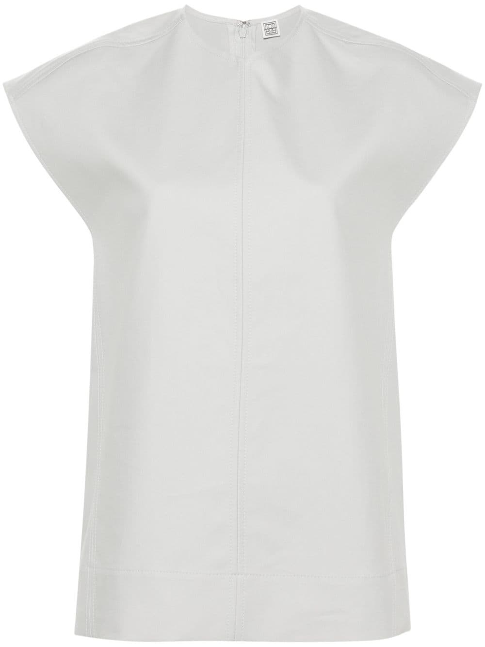 cap-sleeve tank top Highlights - Glacier blue - Organic cotton - V-neck - Cap sleeves - Straight hem - Unlined - Concealed rear hook and zip fastening Imported Composition Organic Cotton 100% SIZE & FIT Model measurements Height 5 ft 11 in(1.8 m) Bust/Chest 30.7 in(78 cm) Hips 35.03 in(89 cm) Waist 24.4 in(62 cm) FittingInformation Designed to be unstructured, offering a loose fit throughout Made from a midweight stretch fabric, this piece offers elasticity and flexibility when worn This piece fits true to size – take your usual size