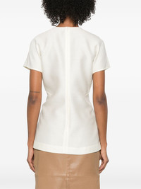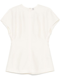 cap-sleeve top Highlights - Light beige - Concealed rear hook and zip fastening - Crew neck - Seam detailing Imported Composition Wool 100% SIZE & FIT Model measurements Height 5 ft 11 in(1.8 m) Bust/Chest 31.49 in(80 cm) Hips 35.82 in(91 cm) Waist 24.8 in(63 cm) FittingInformation Designed for a slim fit that sits just away from the body offering a close yet comfortable fit The dart stitching adds structure and a closer fit in the torso of this piece Made from a midweight non-stretch fabric