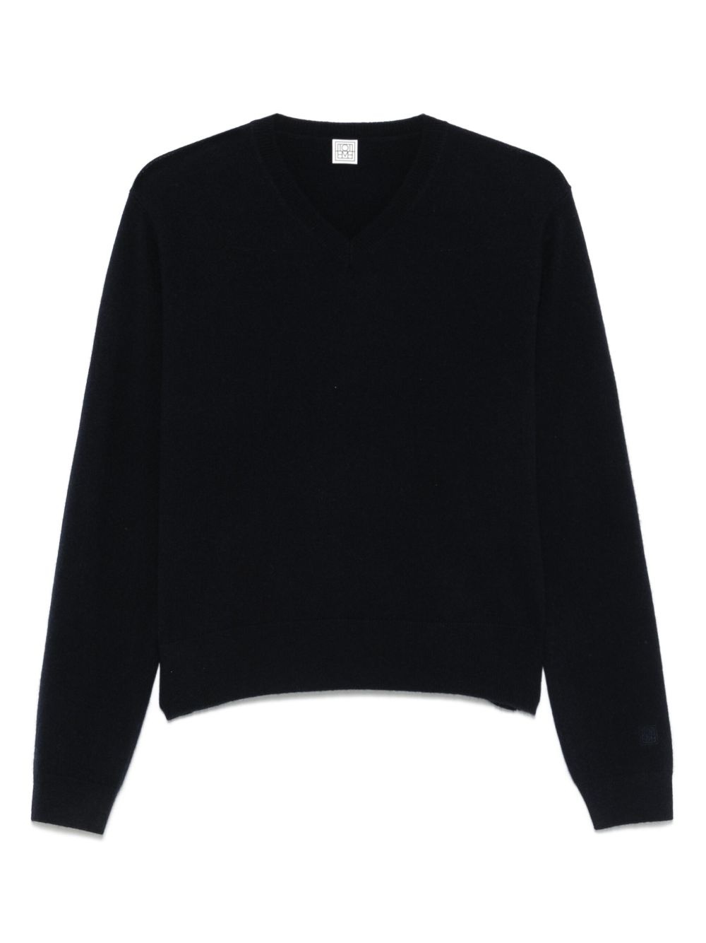 cashmere sweater Highlights - Navy blue - Ribbed v-neck - Long sleeves - Ribbed cuffs and hem Imported Composition Cashmere 100% SIZE & FIT Model measurements Height 5 ft 10 in(1.78 m) Bust/Chest 31.49 in(80 cm) Hips 37 in(94 cm) Waist 23.62 in(60 cm) FittingInformation Designed for a relaxed fit, this piece allows for comfort and movement when worn The ribbed hem offers a close, comfortable fit Made with a midweight knit, this piece offers some stretch