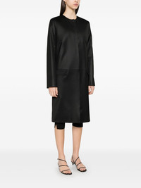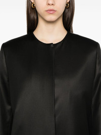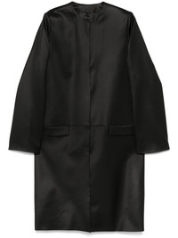 Chintz coat Highlights - Black - Concealed front button fastening - Collarless - Shoulder pads - Two side flap pockets Imported Composition Outer: Viscose 55%, Elastane 2% Lining: Viscose 100% Cotton 43% SIZE & FIT Model measurements Height 5 ft 10 in(1.78 m) Bust/Chest 33.85 in(86 cm) Hips 36.61 in(93 cm) Waist 26.77 in(68 cm) FittingInformation Designed for a boxy fit, intended for a loose fit throughout The internal shoulder pads offer a structured shape Made from a midweight fabric