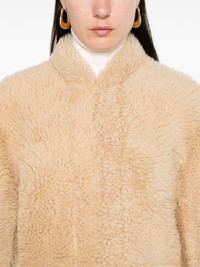 Cinched shearling jacket Highlights - Butter yellow - Shearling - Hook and eye fastening - Round neck - Long sleeves - Two side inset pockets - Suede lining - Internal logo patch - Straight hem Imported Composition Sheep Skin/Shearling 100% SIZE & FIT Model measurements Height 5 ft 10 in(1.78 m) Bust/Chest 33.46 in(85 cm) Hips 36.22 in(92 cm) Waist 23.22 in(59 cm) Measurement SLEEVE LENGTH 25.19 in(64 cm) LENGTH 28.14 in(71.5 cm) WAIST 32.28 in(82 cm) FittingInformation Designed for a slim fit that sits just away from the body offering a close yet comfortable fit Firm shearling has a treated construction offering some durability