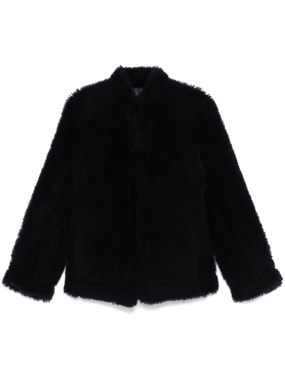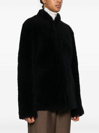 Cinched shearling jacket Highlights - Navy blue - Shearling - Hook and eye fastening - Round neck - Long sleeves - Two side inset pockets - Suede lining - Internal logo patch - Straight hem Imported Composition Sheep Skin/Shearling 100% SIZE & FIT Model measurements Height 5 ft 10 in(1.77 m) Bust/Chest 33.07 in(84 cm) Hips 37 in(94 cm) Waist 24.8 in(63 cm) FittingInformation Designed for a slim fit that sits just away from the body offering a close yet comfortable fit Firm shearling has a treated construction offering some durability
