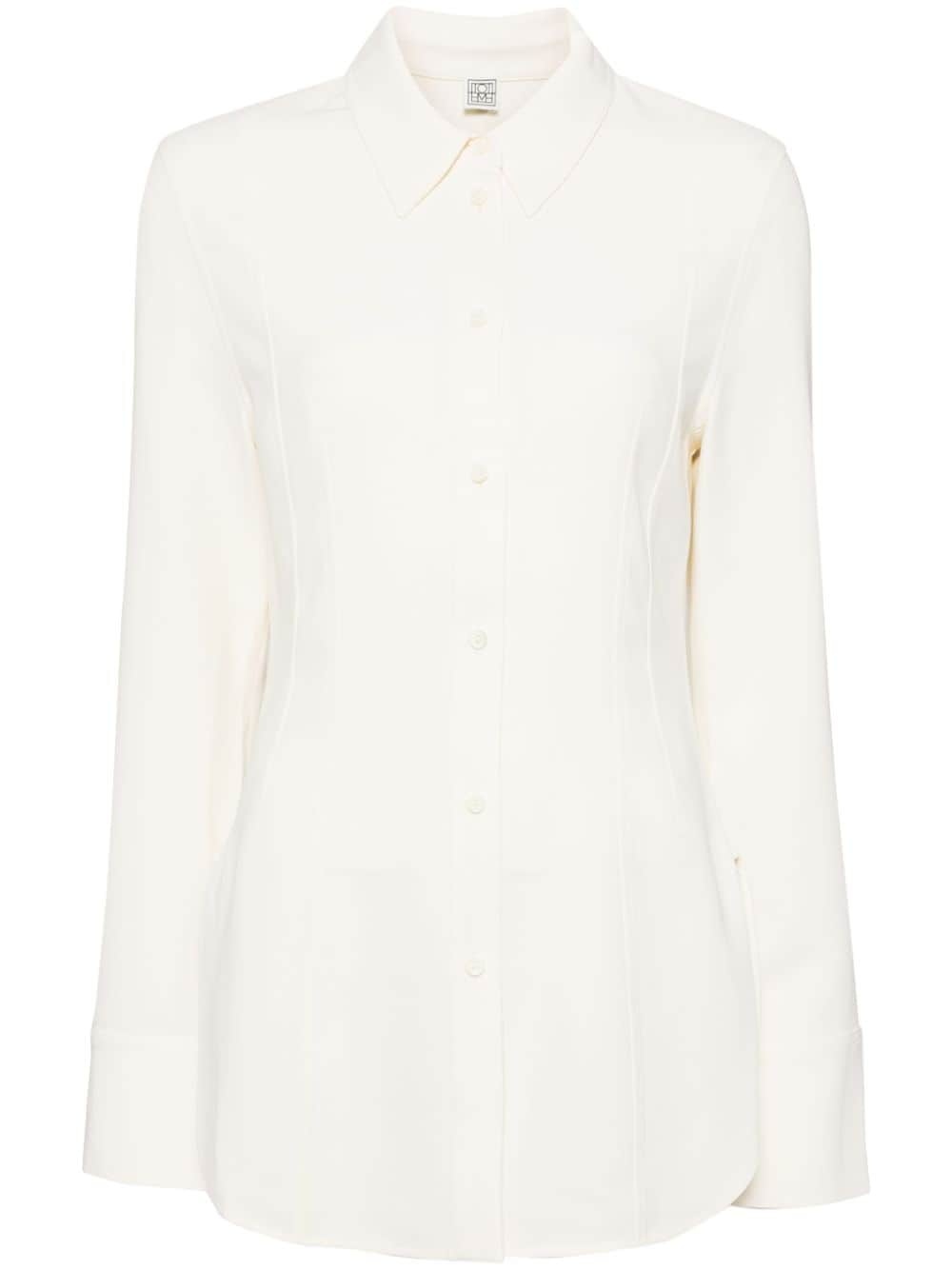 classic collar shirt Highlights - James white - Button fastening - Dart detailing - Classic collar - Long sleeves - Curved hem Imported Composition Outer: Acetate 60%, Polyester 40% Lining: Polyester 100% SIZE & FIT Model measurements Height 5 ft 10 in(1.77 m) Bust/Chest 27.95 in(71 cm) Hips 34.64 in(88 cm) Waist 22.83 in(58 cm) FittingInformation Designed to be unstructured, offering a loose fit throughout The dart stitching adds structure and a closer fit in the torso of this piece Made from a midweight non-stretch fabric, this piece offers minimal elasticity when worn Measurement SLEEVE LENGTH 26.77 in(68 cm) LENGTH 31.1 in(79 cm) BUST 39.37 in(100 cm) Shoulder Width 16.53 in(42 cm)