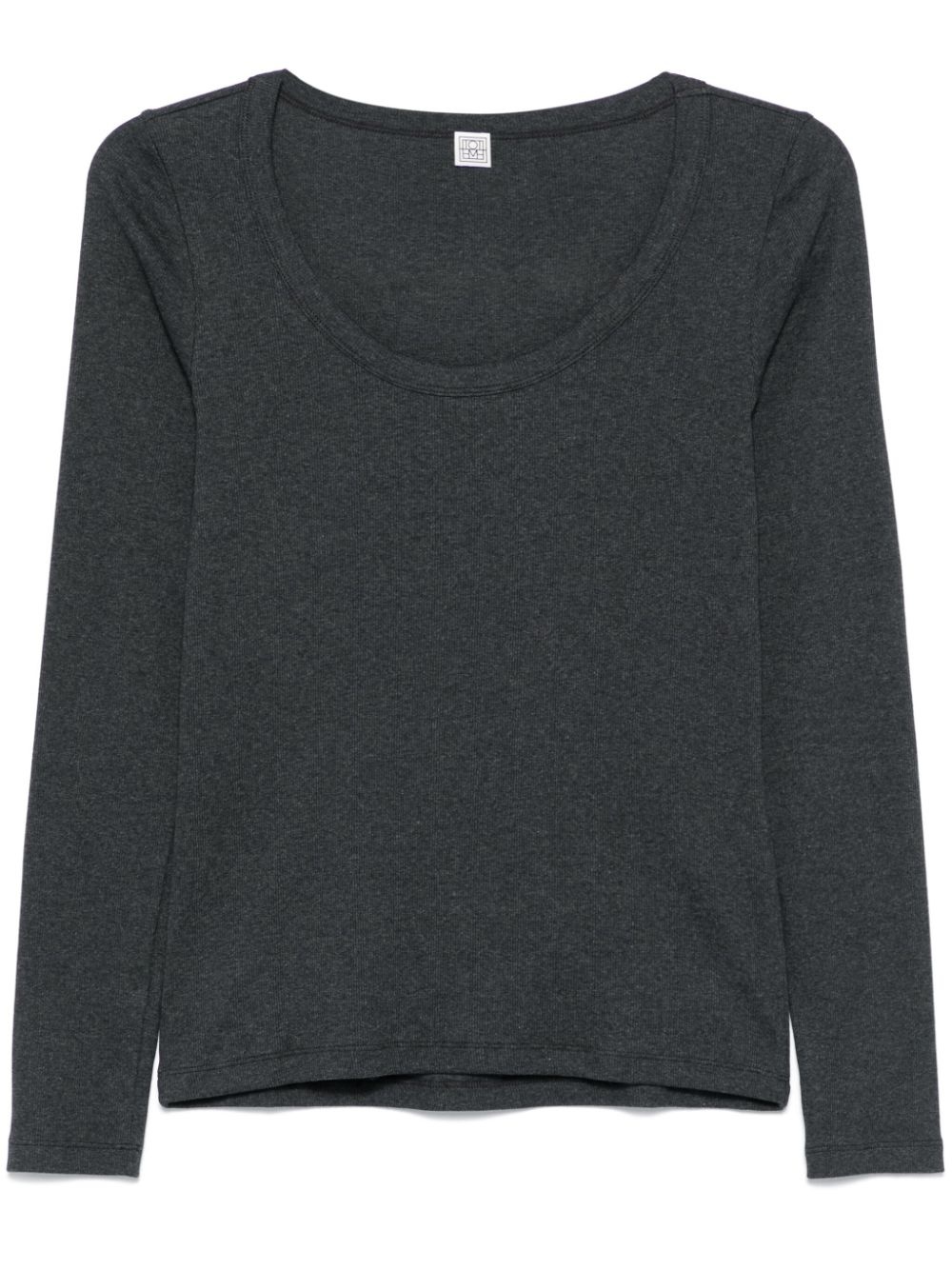 Classic T-shirt Highlights - Charcoal grey - Organic cotton blend - Fine ribbed - Melange effect - Scoop neck - Long sleeves - Straight hem Imported Composition Organic Cotton 97%, Elastane 3% SIZE & FIT Model measurements Height 5 ft 11 in(1.8 m) Bust/Chest 32.67 in(83 cm) Hips 36.22 in(92 cm) Waist 24.4 in(62 cm) FittingInformation Designed for a slim fit that sits just away from the body offering a close yet comfortable fit Made from a midweight stretch fabric, this piece offers elasticity and flexibility when worn