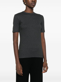 Classic T-shirt Highlights - Charcoal grey - Organic cotton blend - Fine ribbed - Melange effect - Crew neck - Short sleeves - Straight hem Imported Composition Organic Cotton 97%, Elastane 3% SIZE & FIT Model measurements Height 5 ft 11 in(1.8 m) Bust/Chest 32.67 in(83 cm) Hips 36.22 in(92 cm) Waist 24.4 in(62 cm) FittingInformation Designed for a slim fit that sits just away from the body offering a close yet comfortable fit Made with a lightweight knit, this piece offers some stretch