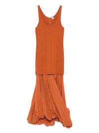 cocoon tank dress Highlights - Terracotta orange - Scoop neck - Sleeveless - Draped design - Layered design Imported Composition Lyocell 60%, Viscose 53%, Recycled Polyamide 45%, Organic Cotton 40%, Elastane 2% SIZE & FIT Model measurements Height 5 ft 10 in(1.78 m) Bust/Chest 33.85 in(86 cm) Hips 36.61 in(93 cm) Waist 26.77 in(68 cm) FittingInformation Designed for a slim fit that sits just away from the body offering a close yet comfortable fit Made from a midweight stretch fabric, this piece offers elasticity and flexibility when worn