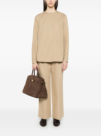 collarless cotton shirt Highlights - Beige - Short front button fastening - Buttoned cuffs - Box-pleat detail - Long sleeves Imported Composition Organic Cotton 100% SIZE & FIT Model measurements Height 5 ft 10 in(1.78 m) Bust/Chest 33.85 in(86 cm) Hips 36.61 in(93 cm) Waist 26.77 in(68 cm) FittingInformation Designed to be unstructured, offering a loose fit throughout Made from a midweight non-stretch fabric