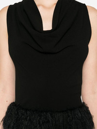 cowl-neck top Highlights - Black - Virgin wool blend - Cowl neck - Concealed side zip fastening - Sleeveless - Straight hem Imported Composition Outer: Wool 86%, Polyamide 9%, Elastane 5% Lining: Recycled Polyester 100% SIZE & FIT Model measurements Height 5 ft 9 in(1.75 m) Bust/Chest 31.88 in(81 cm) Hips 34.64 in(88 cm) Waist 24.01 in(61 cm) FittingInformation Designed for a slim fit that sits just away from the body offering a close yet comfortable fit Made from a midweight fabric