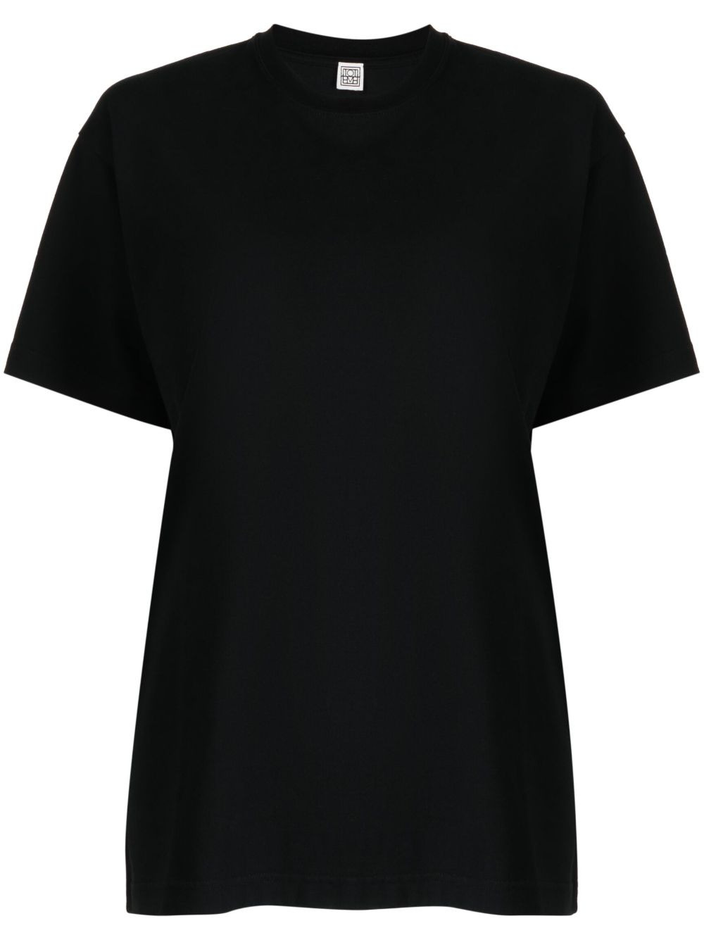 crew-neck cotton T-shirt The heavyweight organic cotton construction of this Toteme T-shirt accentuates its straight fit. The top appears in a black colourway for versatile styling. Highlights - Black - Organic cotton - Crew neck - Short sleeves - Straight hem Imported Composition Body: Cotton 100% SIZE & FIT Model measurements Height 5 ft 10 in(1.78 m) Bust/Chest 33.46 in(85 cm) Hips 35.43 in(90 cm) Waist 24.4 in(62 cm) FittingInformation Designed for a relaxed fit, this piece allows for comfort and movement when worn Made from a midweight non-stretch fabric, this piece offers minimal elasticity when worn This piece fits true to size – take your usual size Washing instructions Machine Wash