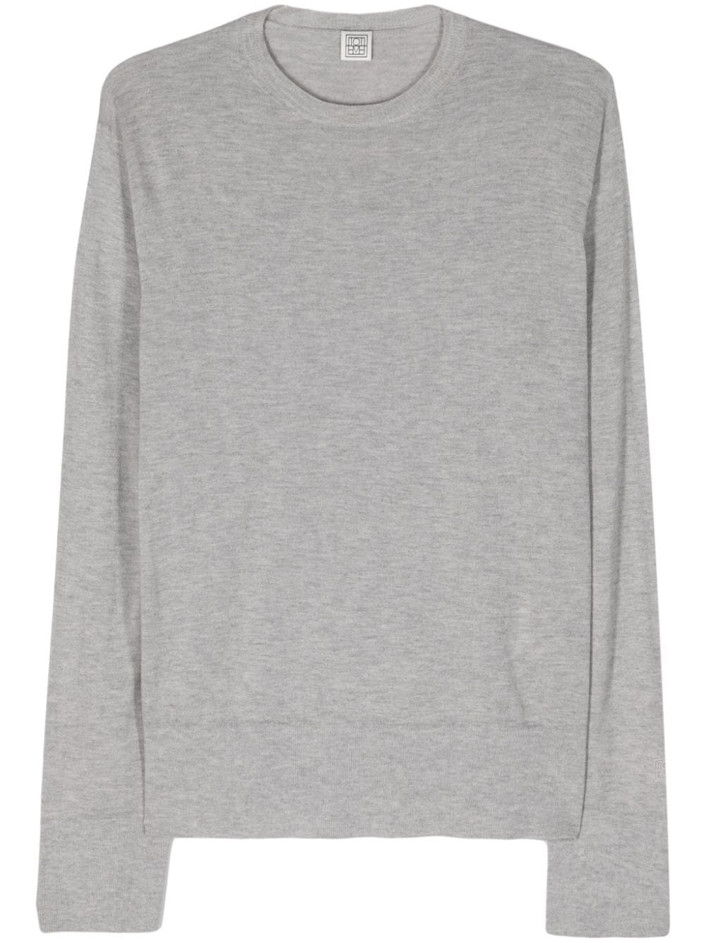 Crew-neck silk cashmere knit grey melange