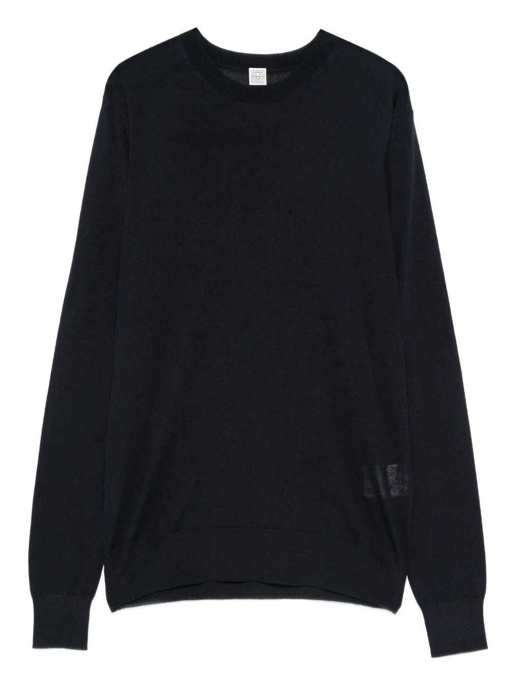crew-neck sweater Highlights - Navy blue - Crew neck - Long sleeves - Fine knit - Straight hem Imported Composition RWS Wool 70%, Silk 30% SIZE & FIT Model measurements Height 5 ft 8 in(1.73 m) Bust/Chest 29.92 in(76 cm) Hips 33.07 in(84 cm) Waist 23.22 in(59 cm) FittingInformation Designed for a relaxed fit, this piece allows for comfort and movement when worn Made with a fine knit, this piece offers some stretch Washing instructions Read Manufacturer Guidelines