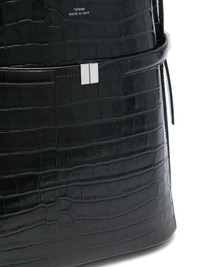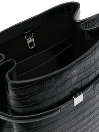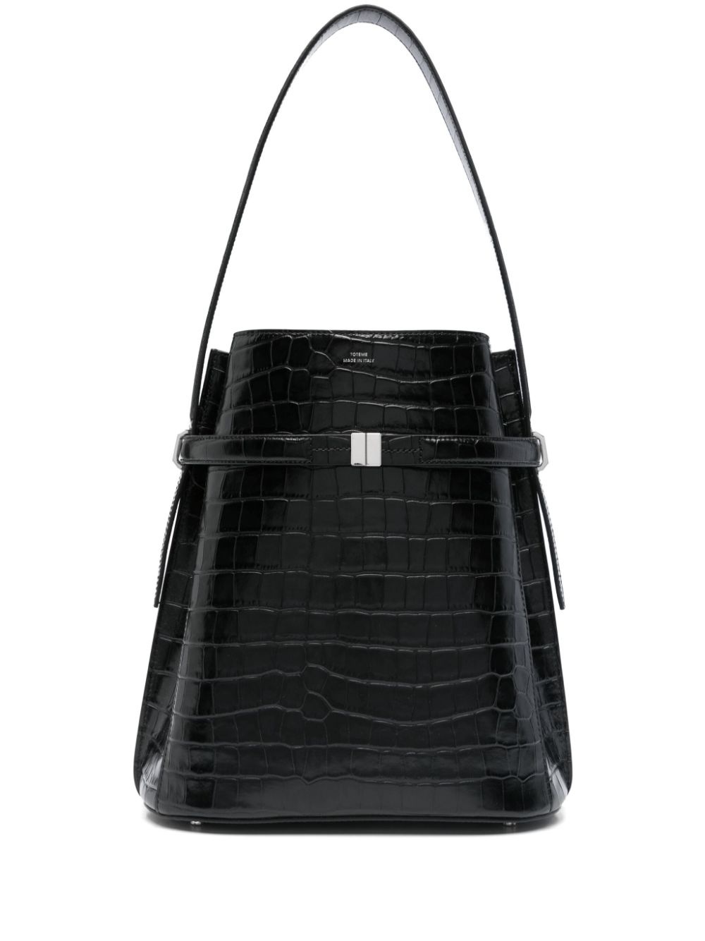 croc-embossed belted bucket bag Highlights - Black - Calf leather - Embossed crocodile effect - Buckle belt - Lobster claw fastening - Adjustable top handle - Logo stamp to the front - Metal feet - Main compartment - Multiple internal slip pockets - Full lining - This piece comes complete with a protective dust bag. Made in Italy Composition Outer: Calf Leather 100% SIZE & FIT Measurement DEPTH 5.9 in(15 cm) HEIGHT 11.81 in(30 cm) STRAP 22.83 in(58 cm) WIDTH 11.41 in(29 cm)