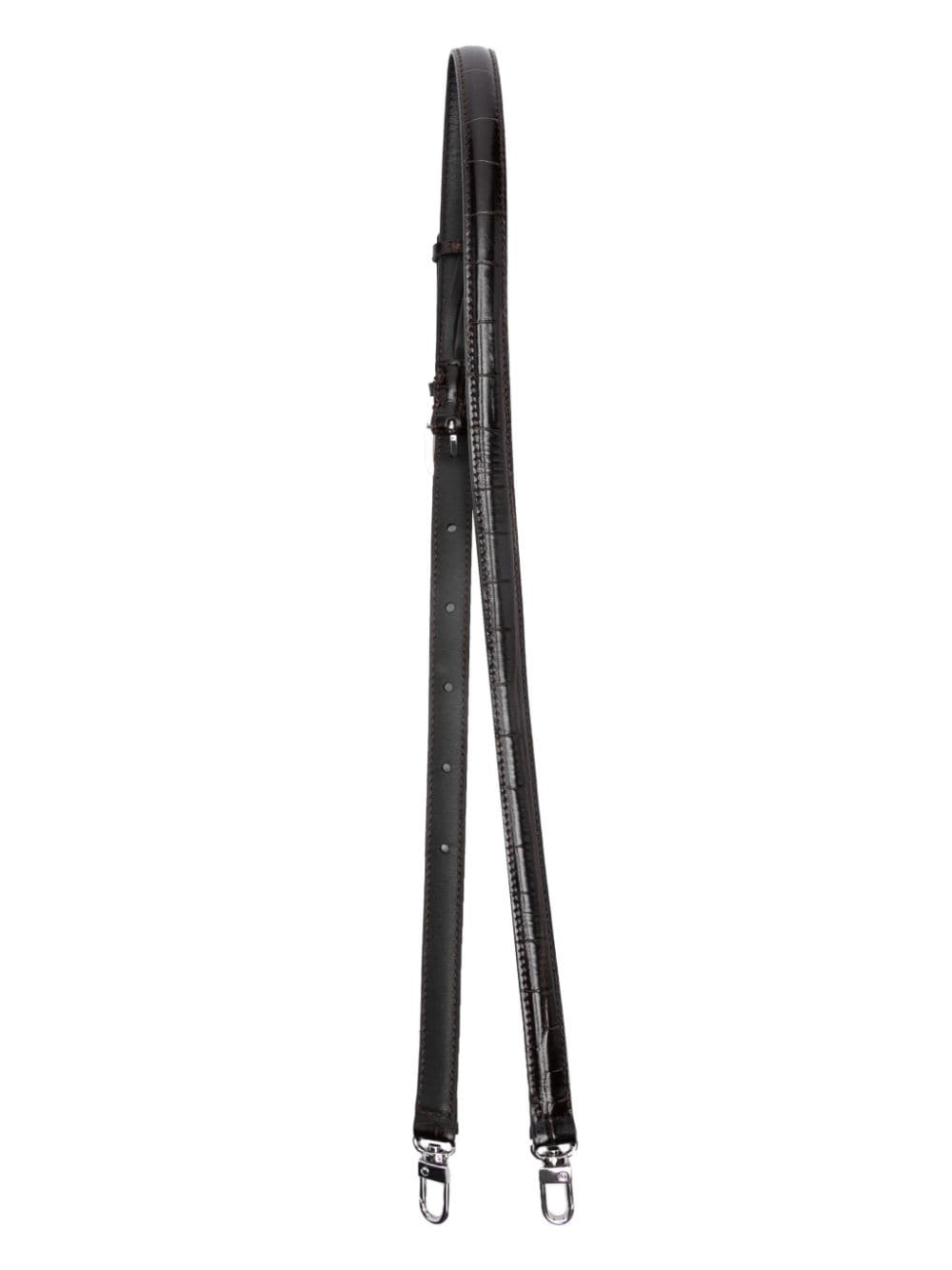 Double clasp leather belt dark brown croco