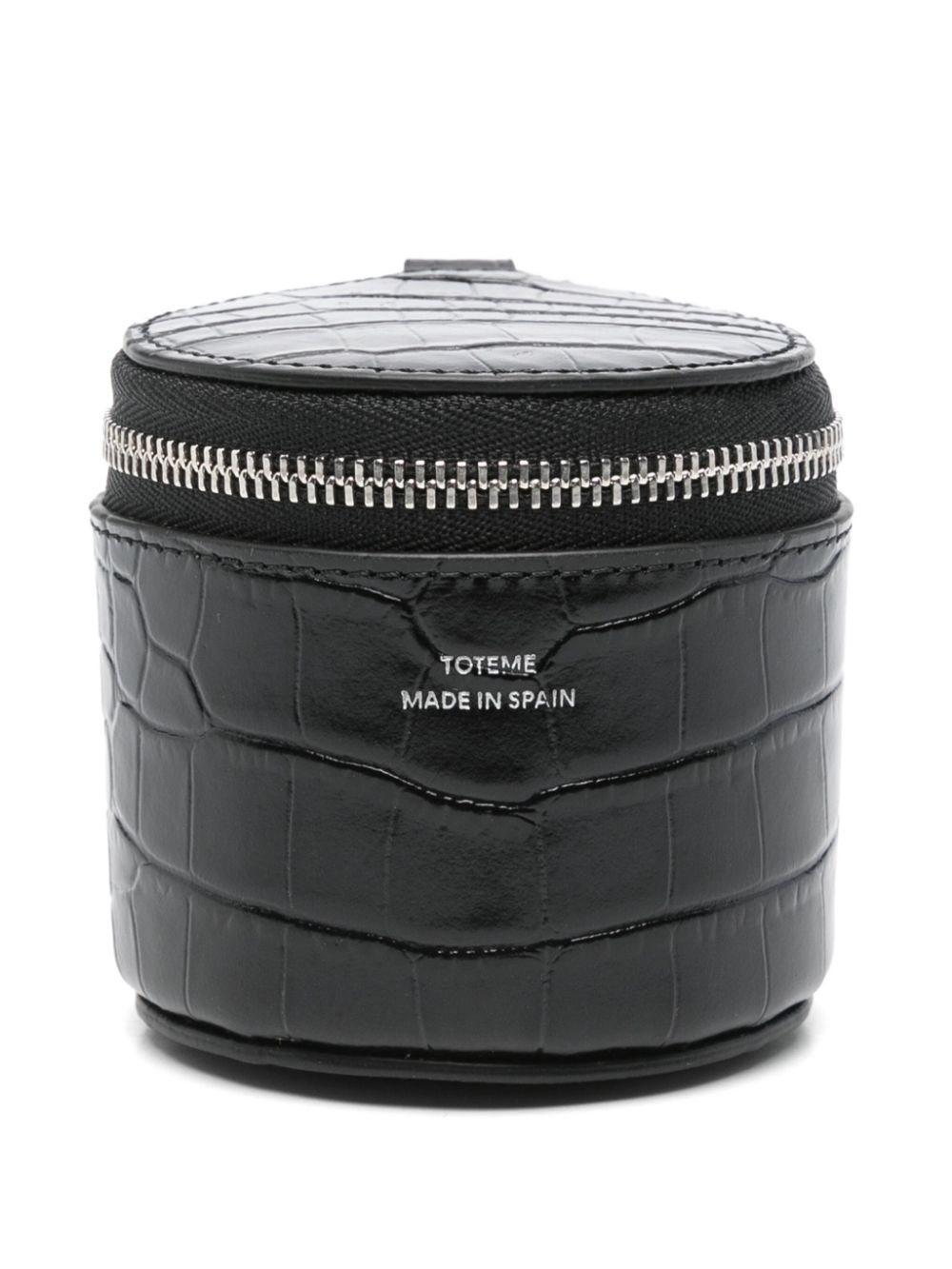 crocodile-embossed jewelry box Highlights - Black - Top zip fastening - Lobster claw fastening - Partitioned compartment Imported Composition Calf Leather 100% SIZE & FIT Measurement DEPTH 2.75 in(7 cm) HEIGHT 2.75 in(7 cm)