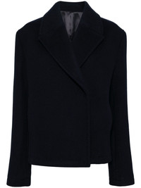 cropped peacoat Highlights - Navy blue - Recycled wool blend - Cropped - Double-breasted button fastening - Notched lapels - Two side inset pockets - Internal pocket - Long sleeves - Straight hem - Full lining Imported Composition Outer: Recycled Wool 50%, Wool 25%, Polyamide 23%, Fabric 2% Lining: Viscose 100% SIZE & FIT Model measurements Height 5 ft 10 in(1.77 m) Bust/Chest 27.95 in(71 cm) Hips 34.64 in(88 cm) Waist 22.83 in(58 cm) FittingInformation Designed to be unstructured, offering a loose fit throughout The internal shoulder pads offer a structured shape Made from a midweight non-stretch fabric Measurement Shoulder Width 18.89 in(48 cm) SLEEVE LENGTH 25.98 in(66 cm) LENGTH 25.98 in(66 cm) WAIST 40.15 in(102 cm) BUST 42.51 in(108 cm)