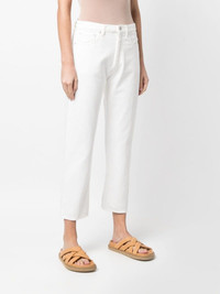 cropped straight-leg jeans Reflecting the brand's minimalist aesthetic, TOTEME presents these jeans as part of their SS22 collection. Crafted from 100% cotton for a comfortable fit, these white jeans are cut to a cropped silhouette and finished with a classic five-pocket design. Highlights - White - Organic cotton - Mid-rise - Belt loops - Front button and zip fastening - Classic five pockets - Cropped leg Made in Italy Composition Organic Cotton 100% SIZE & FIT Model measurements Height 5 ft 10 in(1.77 m) Bust/Chest 32.28 in(82 cm) Hips 35.03 in(89 cm) Waist 25.19 in(64 cm)