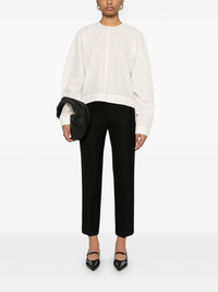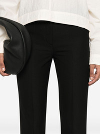 cropped straight-leg trousers Highlights - Black - Concealed front button, hook and zip fastening - Two side inset pockets - Pressed crease Imported Composition Recycled Polyester 55%, Wool 45% SIZE & FIT Model measurements Height 5 ft 10 in(1.78 m) Bust/Chest 32.67 in(83 cm) Hips 35.43 in(90 cm) Waist 23.22 in(59 cm) FittingInformation Designed for a straight-leg fit, these trousers allow for a close fit at the waist and an unrestricted, comfortable fit over the leg Cropped in length Made from a midweight non-stretch fabric