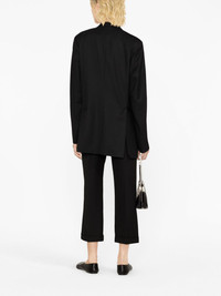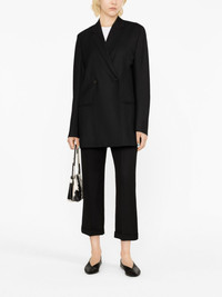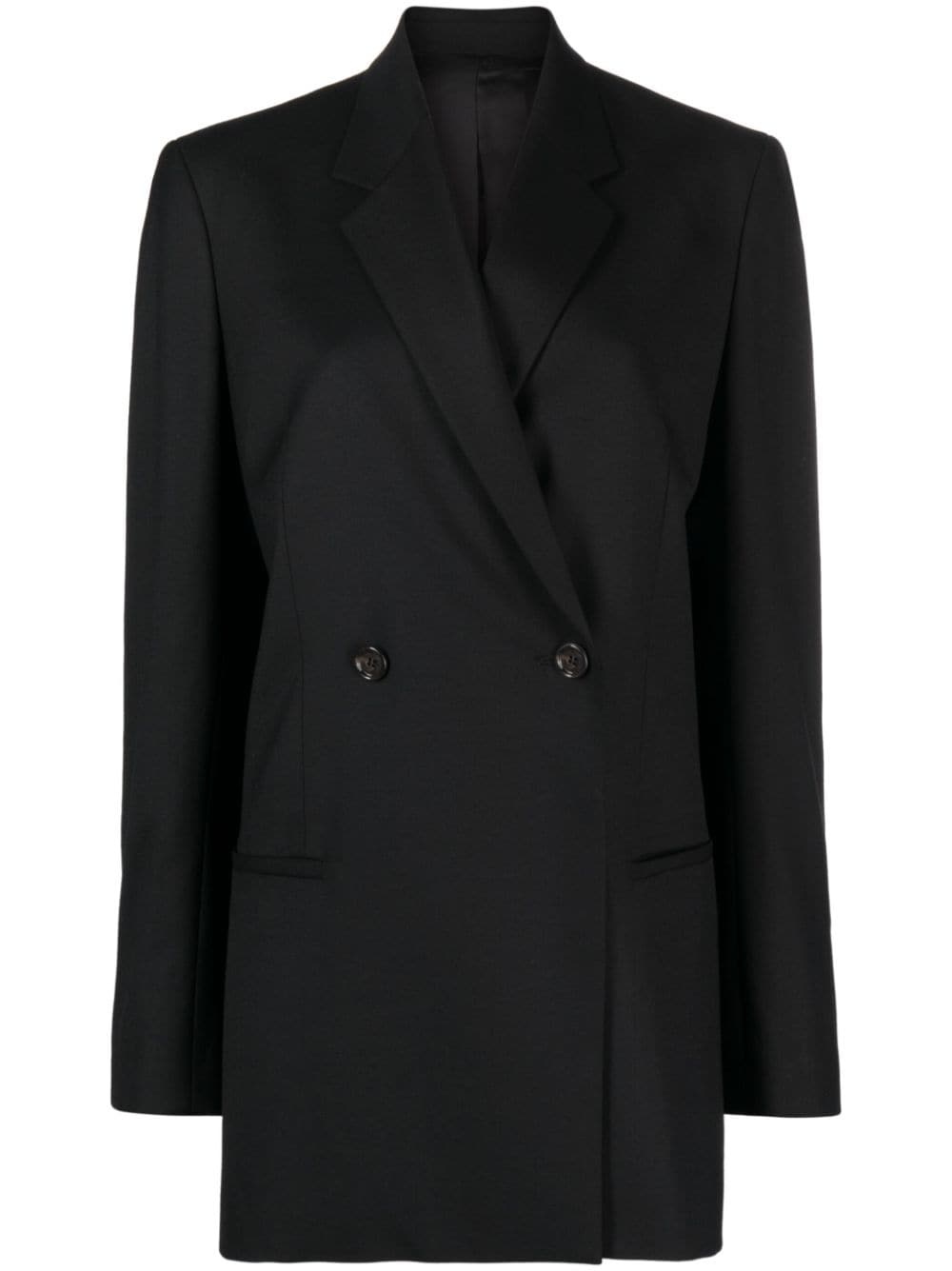 double-breasted blazer Cut to an oversized fit, this wool-blend blazer from TOTEME features a classic double-breasted construction and welt pockets that nod to traditional tailoring. Highlights - Black - Wool blend - Notched lapels - Double-breasted button fastening - Long sleeves - Two side welt pockets Imported Composition Outer: Recycled Polyethylene 55%, Wool 45% Lining: Viscose 100% SIZE & FIT Model measurements Height 5 ft 10 in(1.79 m) Bust/Chest 31.49 in(80 cm) Hips 35.03 in(89 cm) Waist 23.62 in(60 cm) Measurement SLEEVE LENGTH 16.92 in(43 cm) LENGTH 29.13 in(74 cm) WAIST 37 in(94 cm) BUST 36.22 in(92 cm)