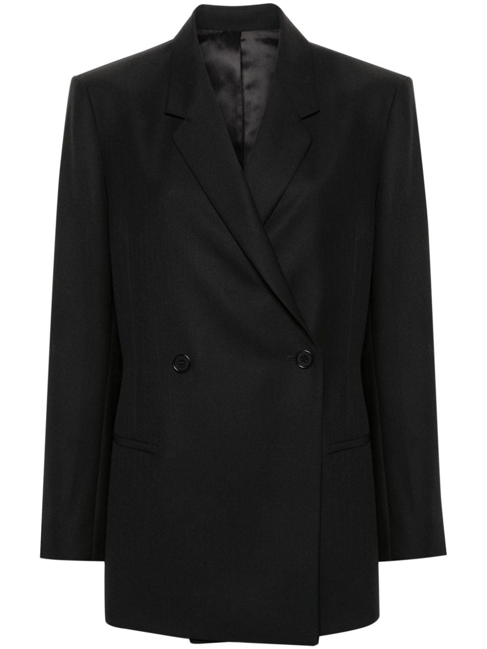 double-breasted blazer Highlights - Black - Textured finish - Dart detailing - Notched lapels - Double-breasted button fastening - Shoulder pads - Long sleeves - Two front welt pockets - Internal jetted pocket - English rear vents - Straight hem - Satin lining Imported Composition Polyester 55%, Wool 45% SIZE & FIT Model measurements Height 5 ft 11 in(1.8 m) Bust/Chest 34.25 in(87 cm) Hips 35.82 in(91 cm) Waist 24.8 in(63 cm) FittingInformation Designed for a relaxed fit, this piece allows for comfort and movement when worn The internal shoulder pads offer a structured shape Made from a midweight fabric This piece fits true to size – take your usual size