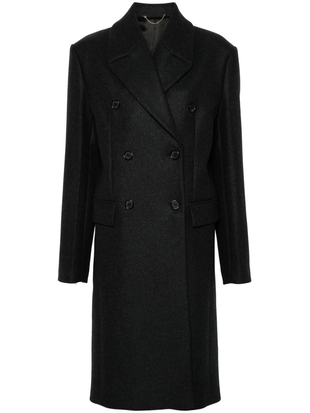 double-breasted coat Highlights - Charcoal grey - Wool blend - Felted finish - Double-breasted button fastening - Notched lapels - Long sleeves - Buttoned-cuff sleeves - Two side flap pockets - Central rear vent - Internal slip pocket - Full lining - Straight hem Imported Composition Outer: Wool 70%, Polyamide 25%, Other fibres 5% Lining: Viscose 100% SIZE & FIT Model measurements Height 5 ft 9 in(1.75 m) Bust/Chest 34.64 in(88 cm) Hips 36.61 in(93 cm) Waist 26.37 in(67 cm) FittingInformation Designed to be unstructured, offering a loose fit throughout The vented hem offers movement at the rear Made from a midweight non-stretch fabric