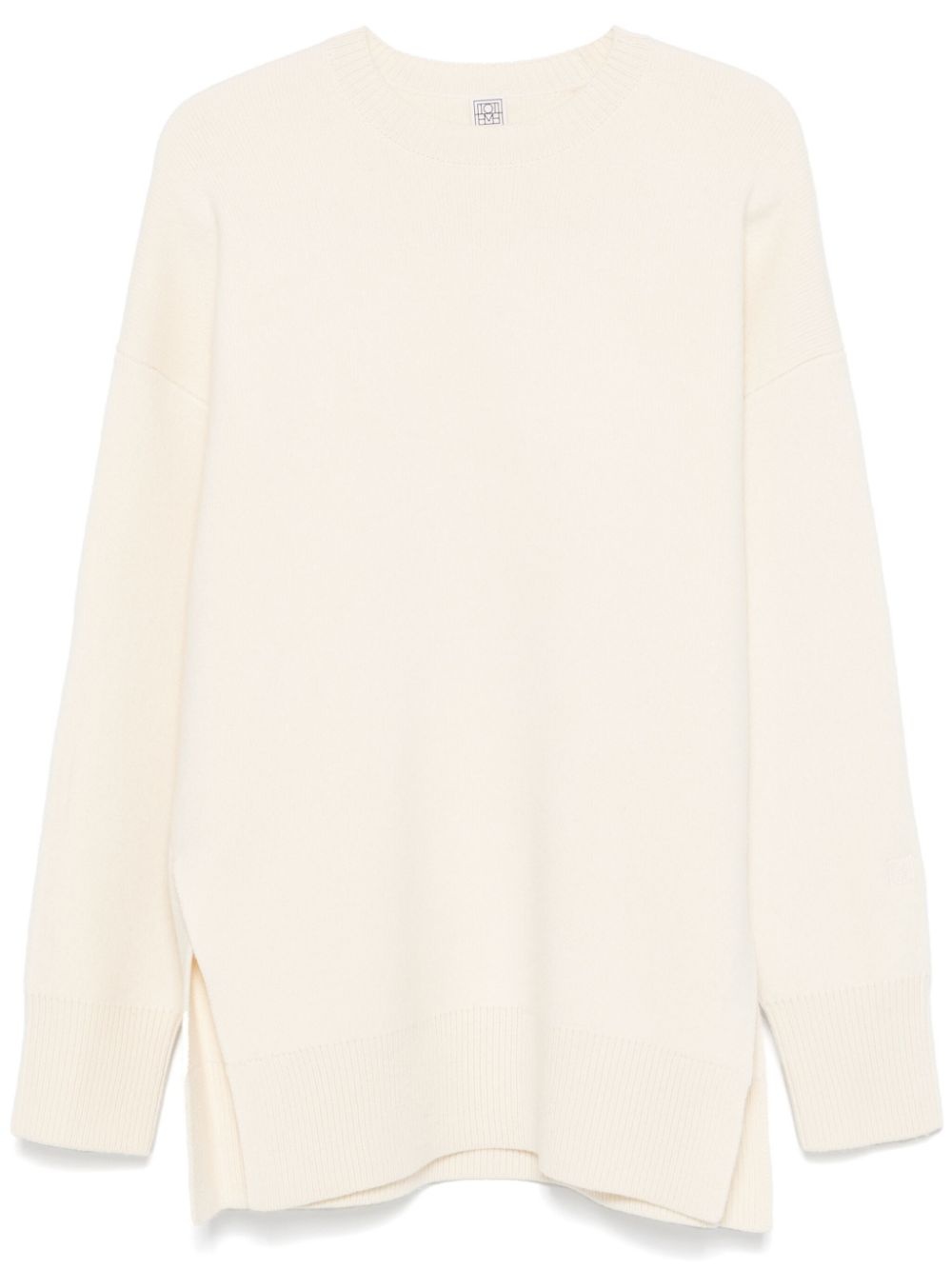 double-knit sweater Highlights - White - Wool-cashmere blend - Double-knit construction - Crew neck - Drop shoulder - Long sleeves - Embroidered logo at the sleeve - Side slits - Straight hem Imported Composition RWS Wool 87%, Cashmere 10%, Polyamide 3% SIZE & FIT Model measurements Height 5 ft 11 in(1.8 m) Bust/Chest 32.67 in(83 cm) Hips 36.22 in(92 cm) Waist 24.4 in(62 cm) FittingInformation Designed for an oversized fit, offering additional room throughout Made with a midweight knit, this piece offers some stretch