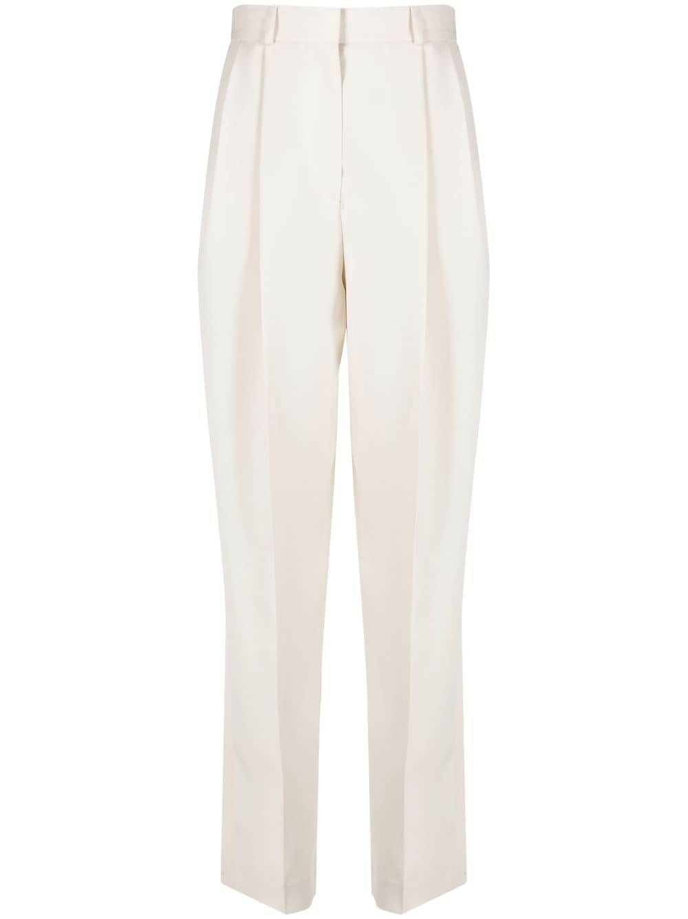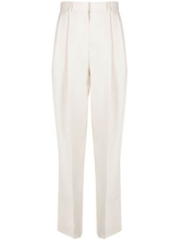 double-pleated tailored trousers According to the brand, these white ‘suit trousers are a new expression of TOTEME's distinctive tailoring codes.’ They’re double pleated at the front to create volume through the tapered leg. Highlights - Ivory white - Tailored design - Pleat detailing - Pressed crease - Mid-rise - Belt loops - Tapered leg - Two side slit pockets - Two rear button-fastening jetted pockets Imported Composition Fabric 100% SIZE & FIT Model measurements Height 5 ft 10 in(1.77 m) Bust/Chest 33.07 in(84 cm) Hips 37 in(94 cm) Waist 24.8 in(63 cm) FittingInformation Designed for a tapered fit, these trousers allow for a close fit at the waist and a loose unrestricted fit over the leg with a closer fit towards the ankle Made from a midweight non-stretch fabric This piece fits true to size – take your usual size Washing instructions Dry Clean Only