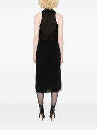 draped fringed skirt Highlights - Black - Draped design - Sleeveless - High neck - Asymmetrical hem - Frayed edge Imported Composition Viscose 83%, RWS Wool 17% SIZE & FIT Model measurements Height 5 ft 9 in(1.75 m) Bust/Chest 34.64 in(88 cm) Hips 36.61 in(93 cm) Waist 26.37 in(67 cm) Washing instructions Read Manufacturer Guidelines
