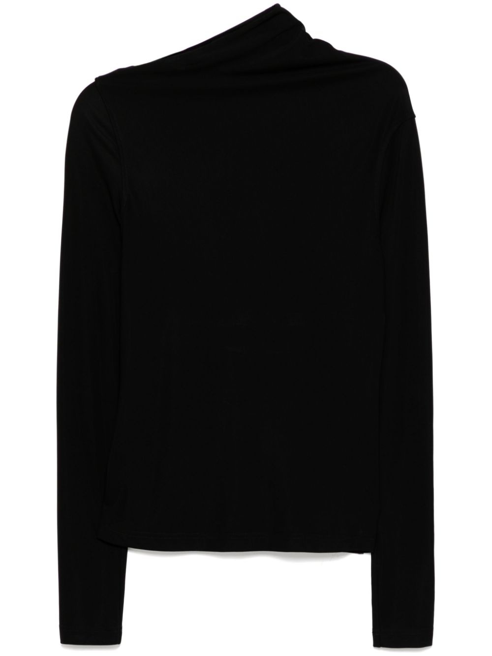 draped jersey top Highlights - Black - Asymmetric neck - Long sleeves Imported Composition Viscose 96%, Elastane 4% Lining: Viscose 94%, Elastane 6% SIZE & FIT Model measurements Height 5 ft 10 in(1.78 m) Bust/Chest 31.88 in(81 cm) Hips 35.43 in(90 cm) Waist 23.22 in(59 cm) FittingInformation Designed for a slim fit that sits just away from the body offering a close yet comfortable fit Made from a midweight stretch fabric, this piece offers elasticity and flexibility when worn