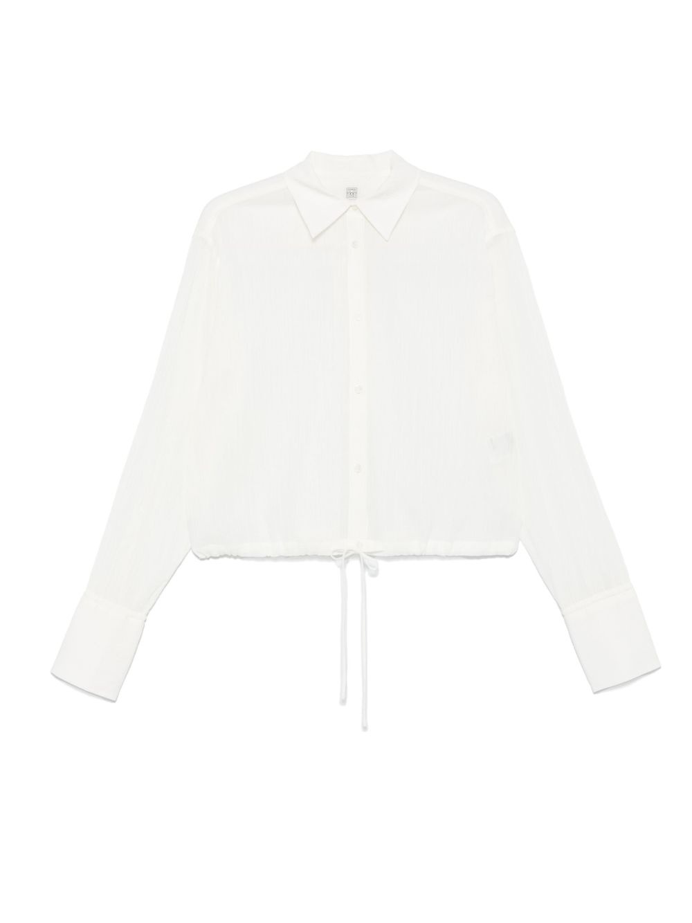 drawstring-hem shirt Highlights - Light beige - Front button fastening - Drop shoulder - Long sleeves - Buttoned cuffs Imported Composition Organic Cotton 100% SIZE & FIT Model measurements Height 5 ft 10 in(1.78 m) Bust/Chest 33.85 in(86 cm) Hips 36.61 in(93 cm) Waist 26.77 in(68 cm) FittingInformation Designed for a relaxed fit, this piece allows for comfort and movement when worn The adjustable drawstring means that you can adjust this piece’s fit to suit your comfort and preference Made from a lightweight non-stretch fabric Washing instructions Dry Clean Only