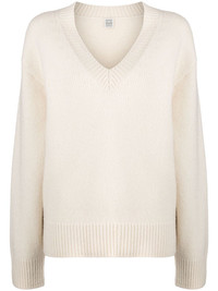 V-Neck wool-cashmere jumper Highlights - Cream white - Knitted construction - V-neck - Drop shoulder - Long sleeves - Ribbed cuffs and hem Imported Composition Fabric 100% SIZE & FIT Model measurements Height 5 ft 11 in(1.8 m) Bust/Chest 31.49 in(80 cm) Hips 36.22 in(92 cm) Waist 25.59 in(65 cm) Measurement SLEEVE LENGTH 22.04 in(56 cm) LENGTH 24.4 in(62 cm) BUST 44.88 in(114 cm) FittingInformation Designed for a relaxed fit, this piece allows for comfort and movement when worn Made with a midweight knit, this piece offers some stretch This piece fits true to size – take your usual size Washing instructions Dry Clean Only